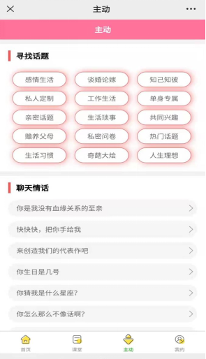 和女生不会聊天的时候,在恋爱聊天话术小程序app中搜索一下就可以搜索到数10个答案,里面有上百万个聊天话题。